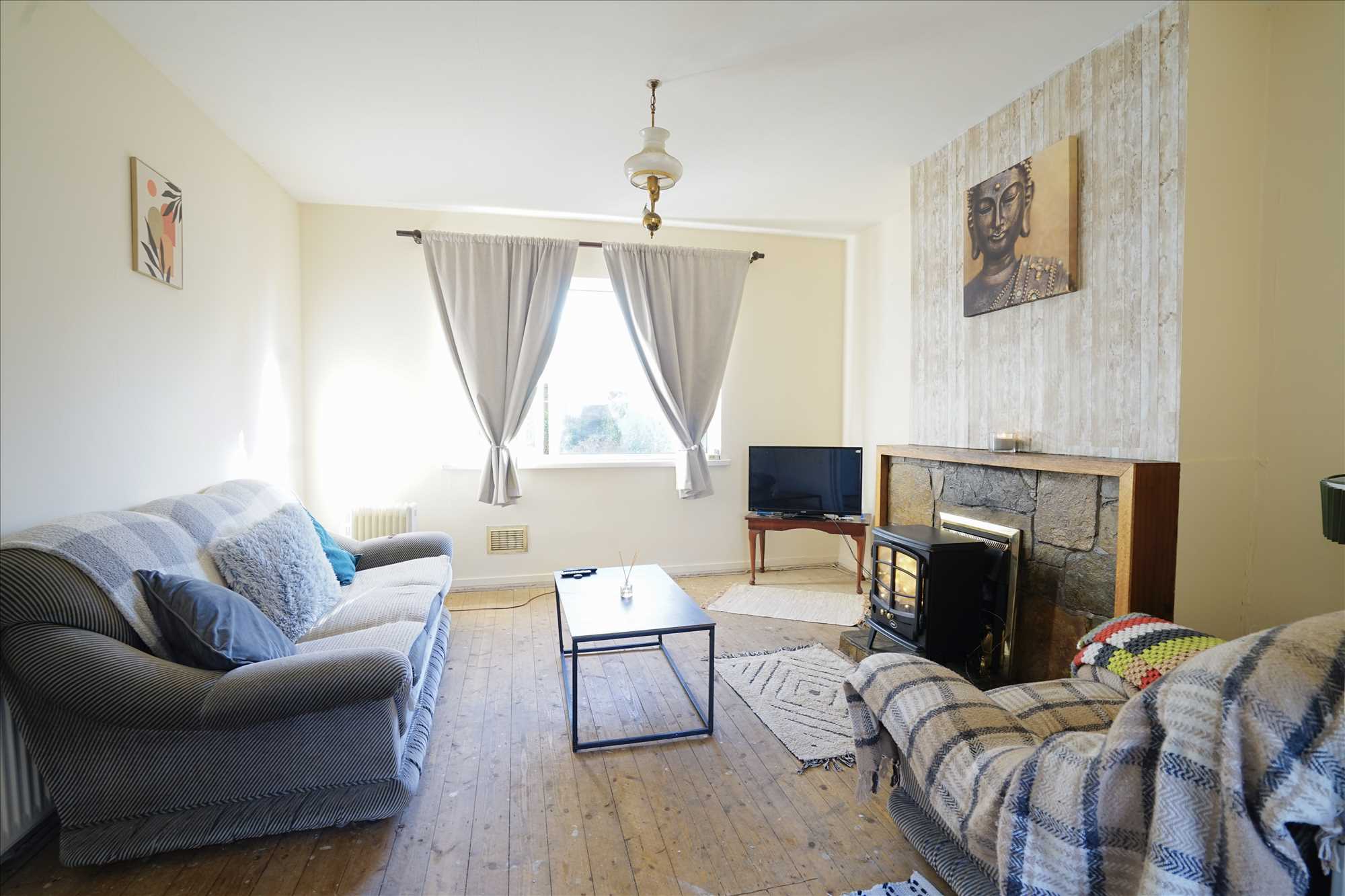 Sitting Room: 3.8m x 3.7m. Wood Floor, gas fire
