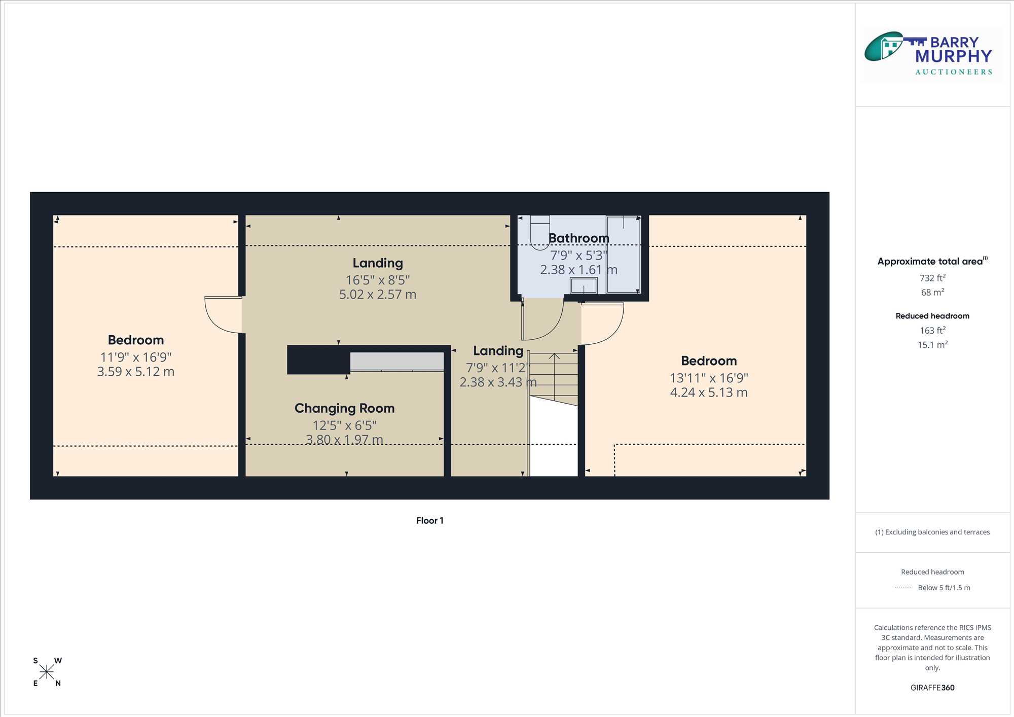 Landing: 2.58m x 5.04m.