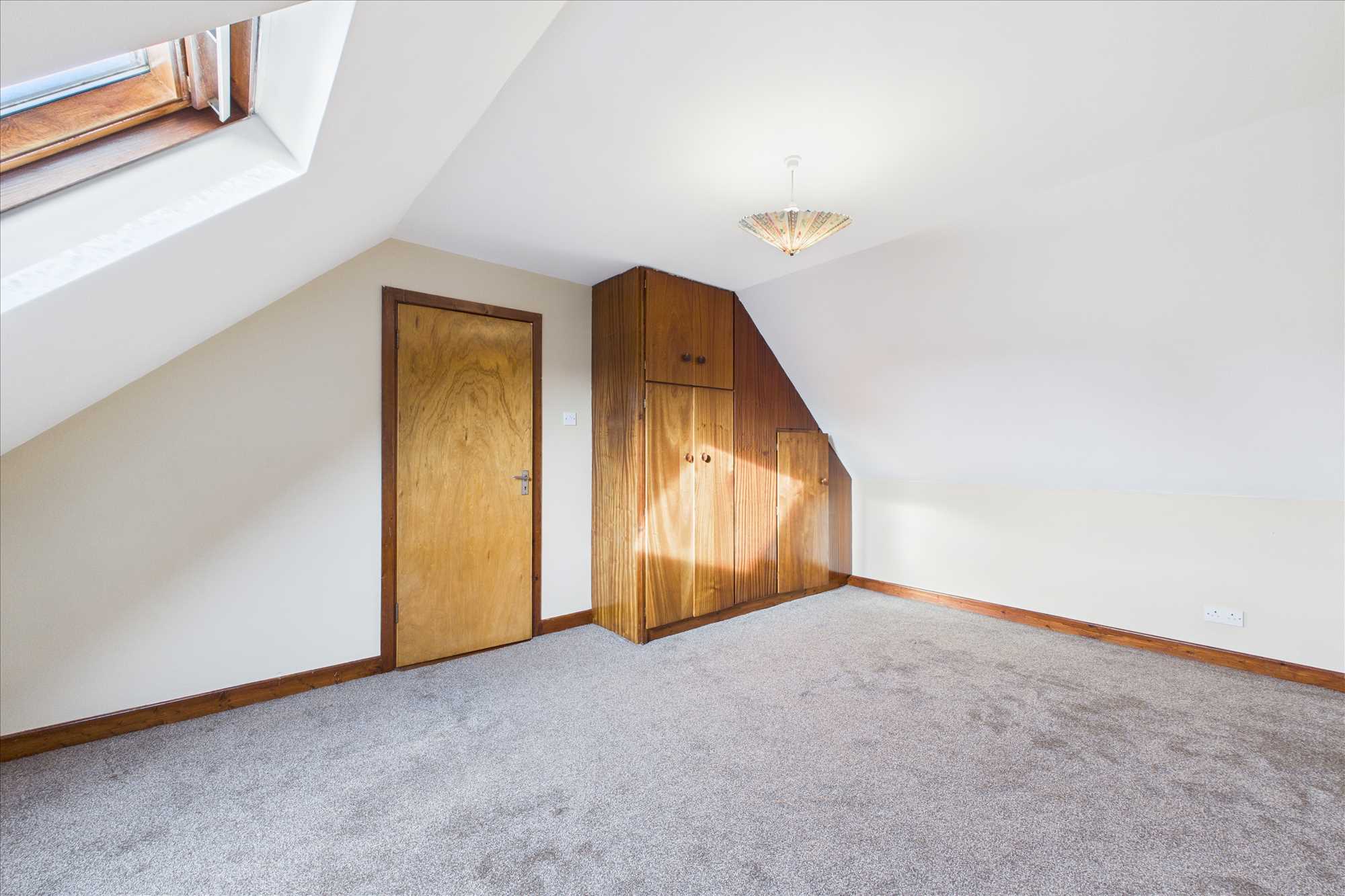 Bedroom 3: 5.13m x 4.23m. Carpet, Velux, fitted wardrobe.