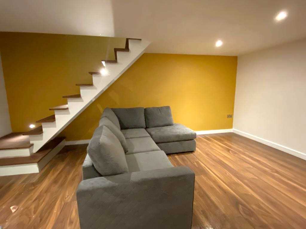 Open plan area: 7.31m x 5.85m. Laminate floor, blinds.