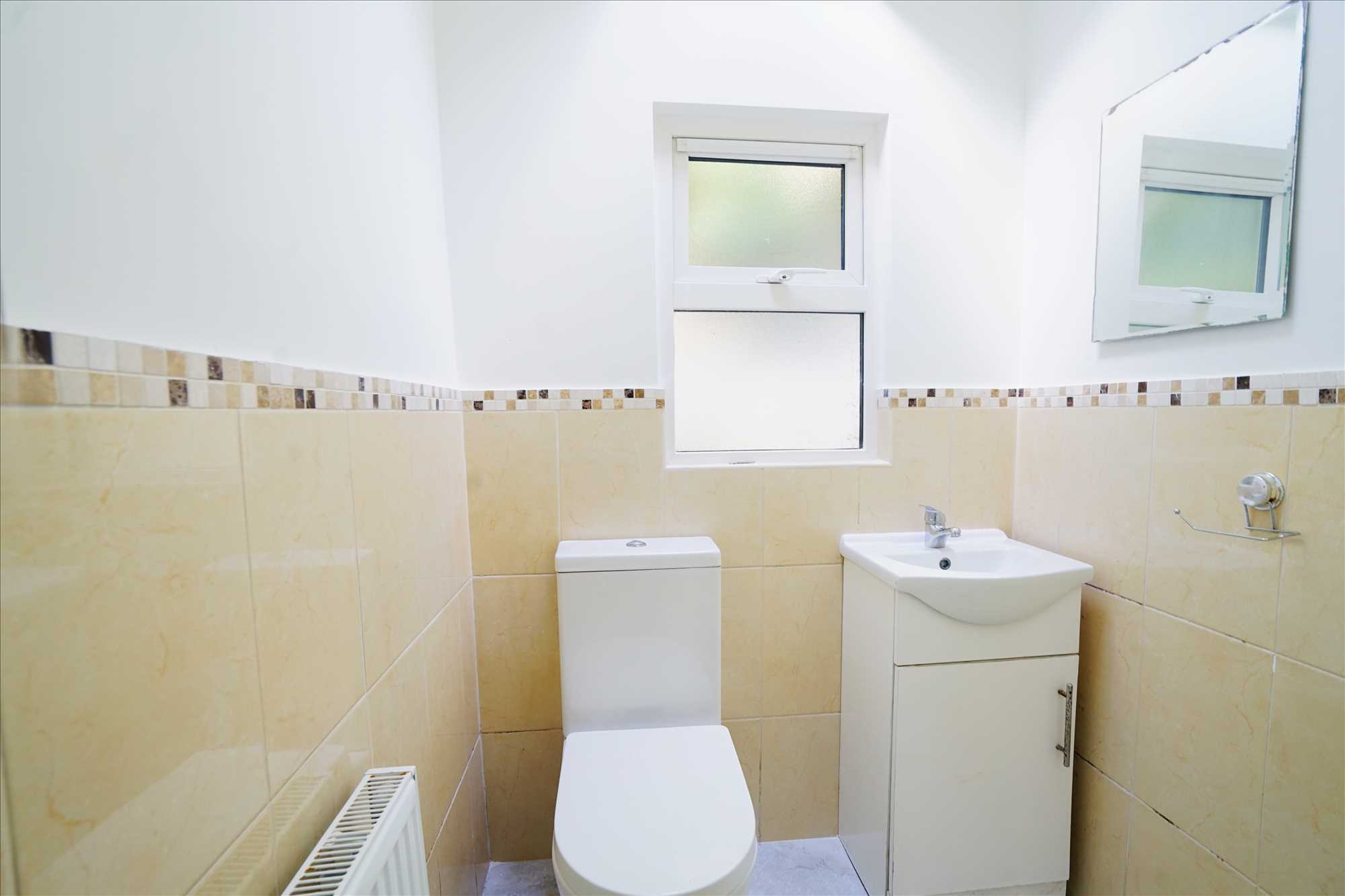 Shower Room: 1.46m x 2.3m. Partially tiled, WC, wash hand basin with vanity unit.