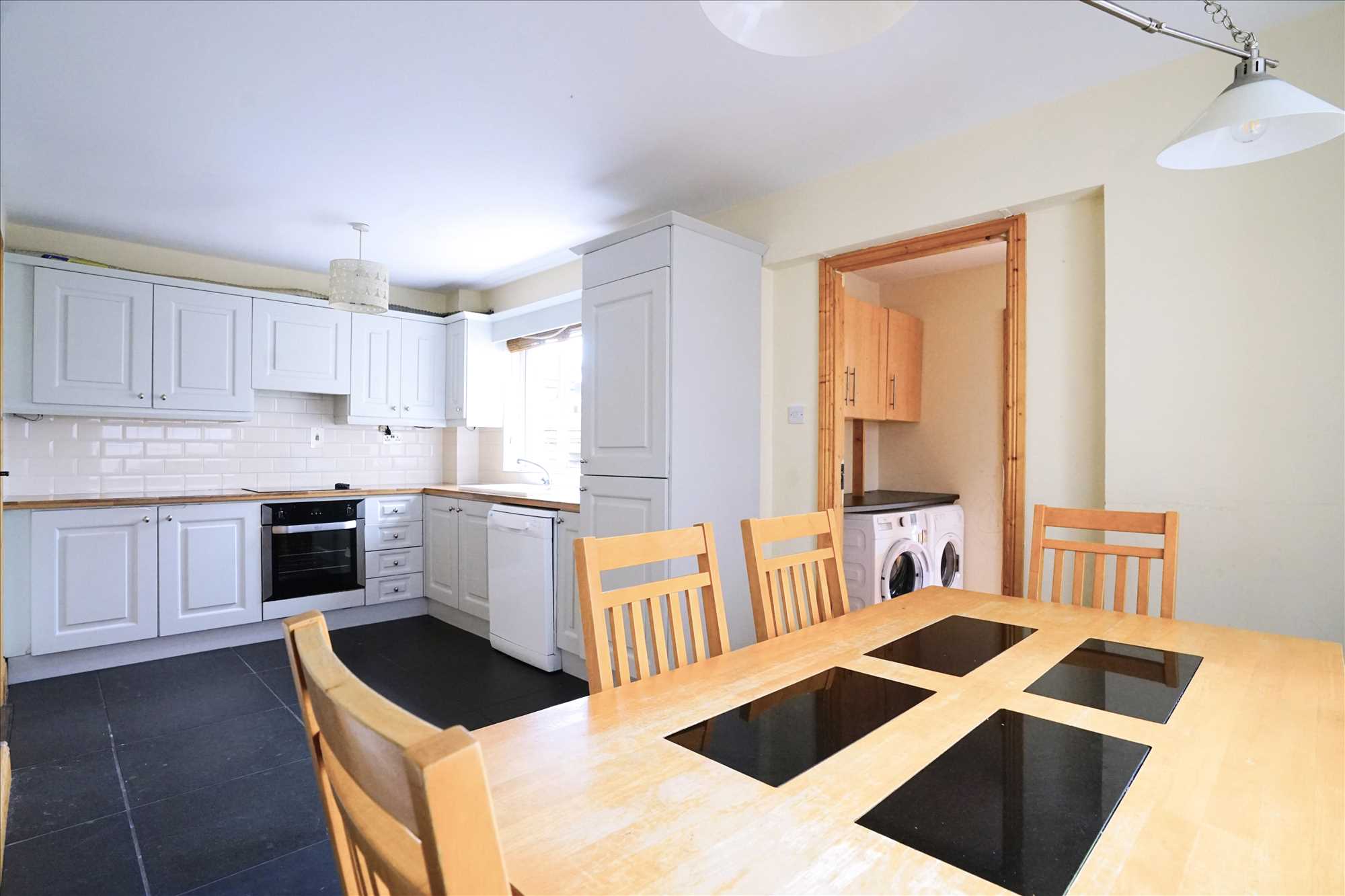 Kitchen/Diner:3.39m x 5.42m. Tiled floor, fitted kitchen with integrated oven, hob & fridge freezer, blinds.