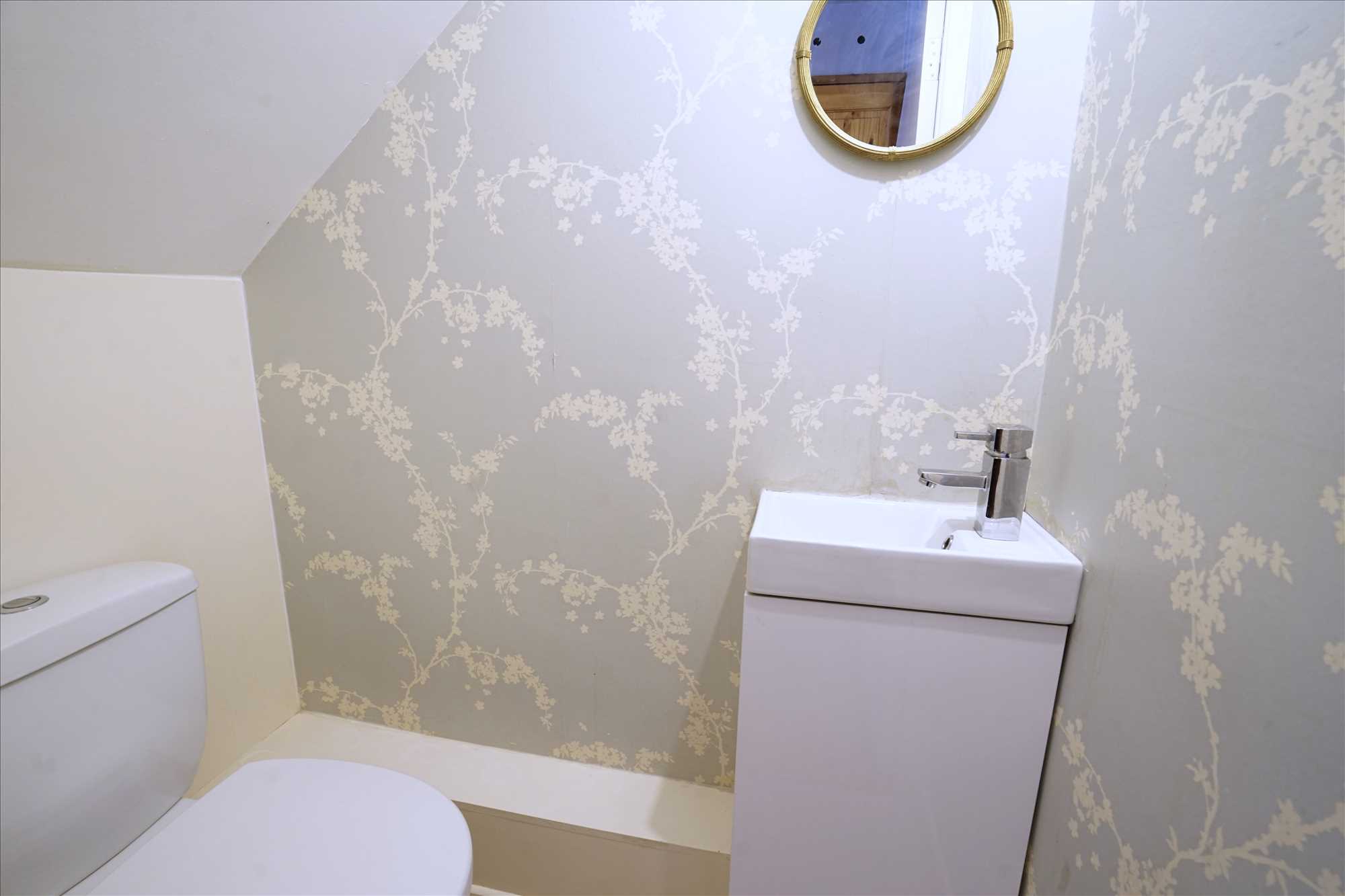 WC: 1.37m x 0.83m. Tiled floor, WC, wash hand basin with vanity unit.