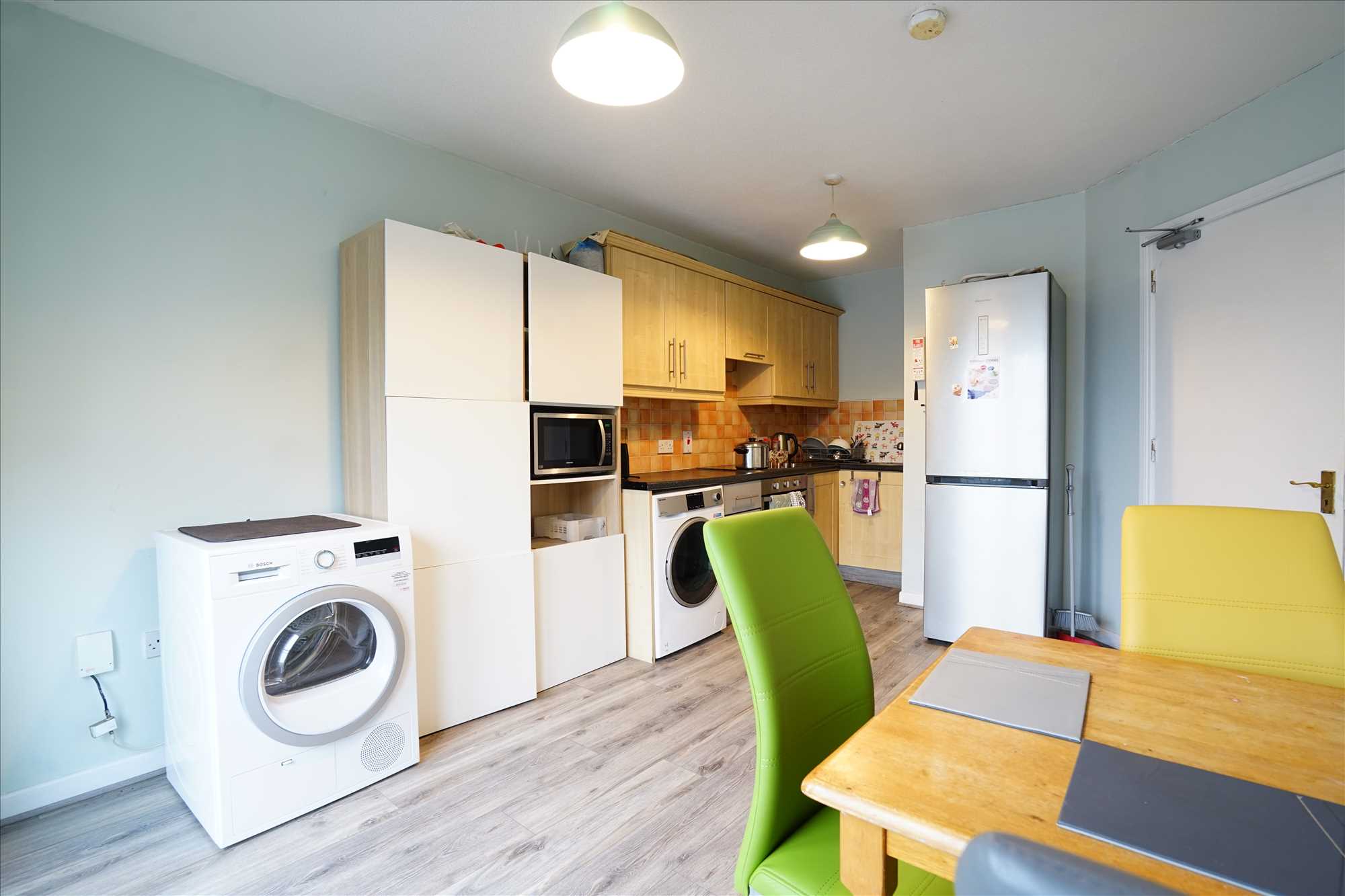 Kitchen/diner: 5.15m x 3.22m. Laminate floor, fitted kitchen with integrated oven & hob.