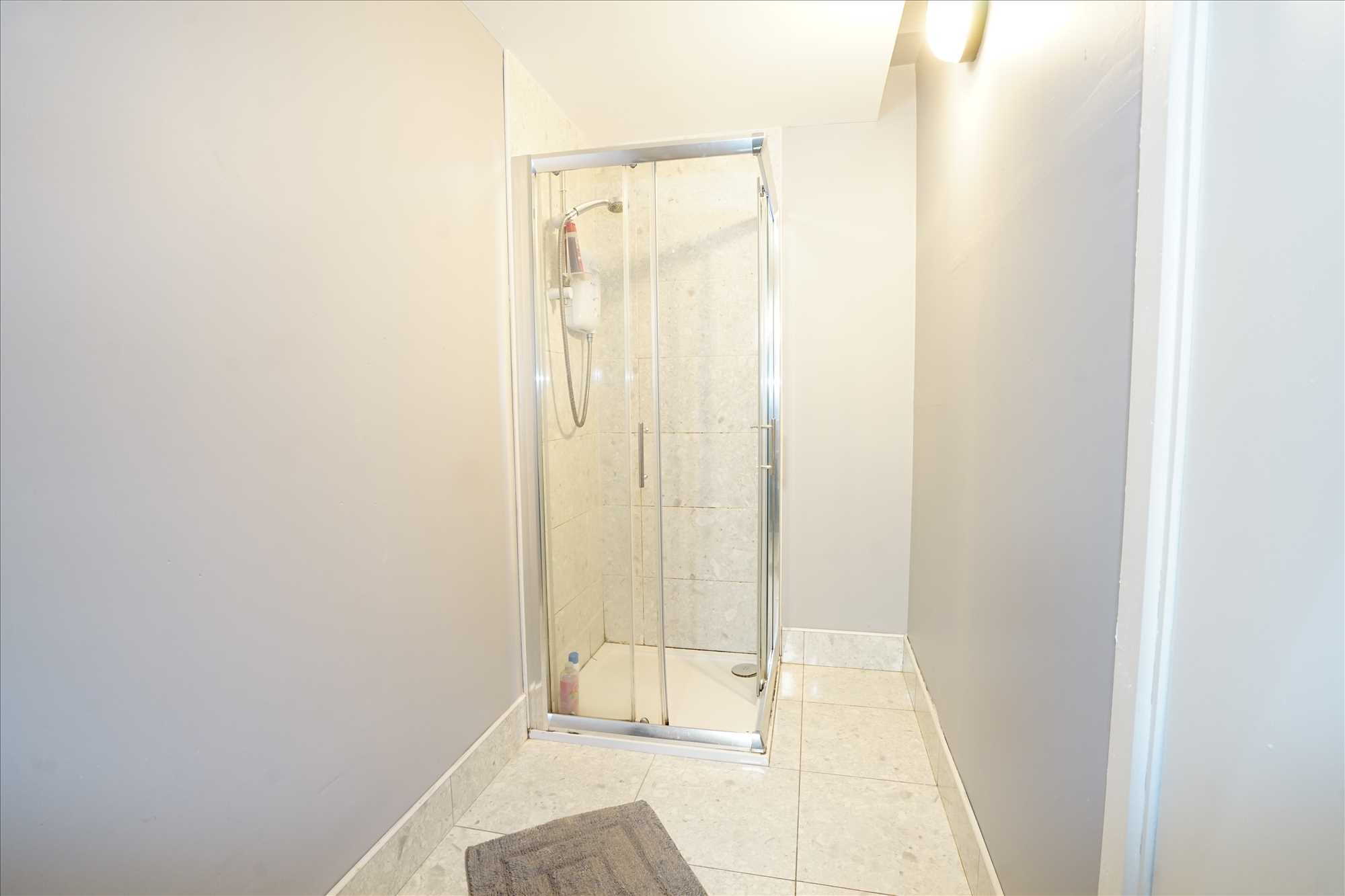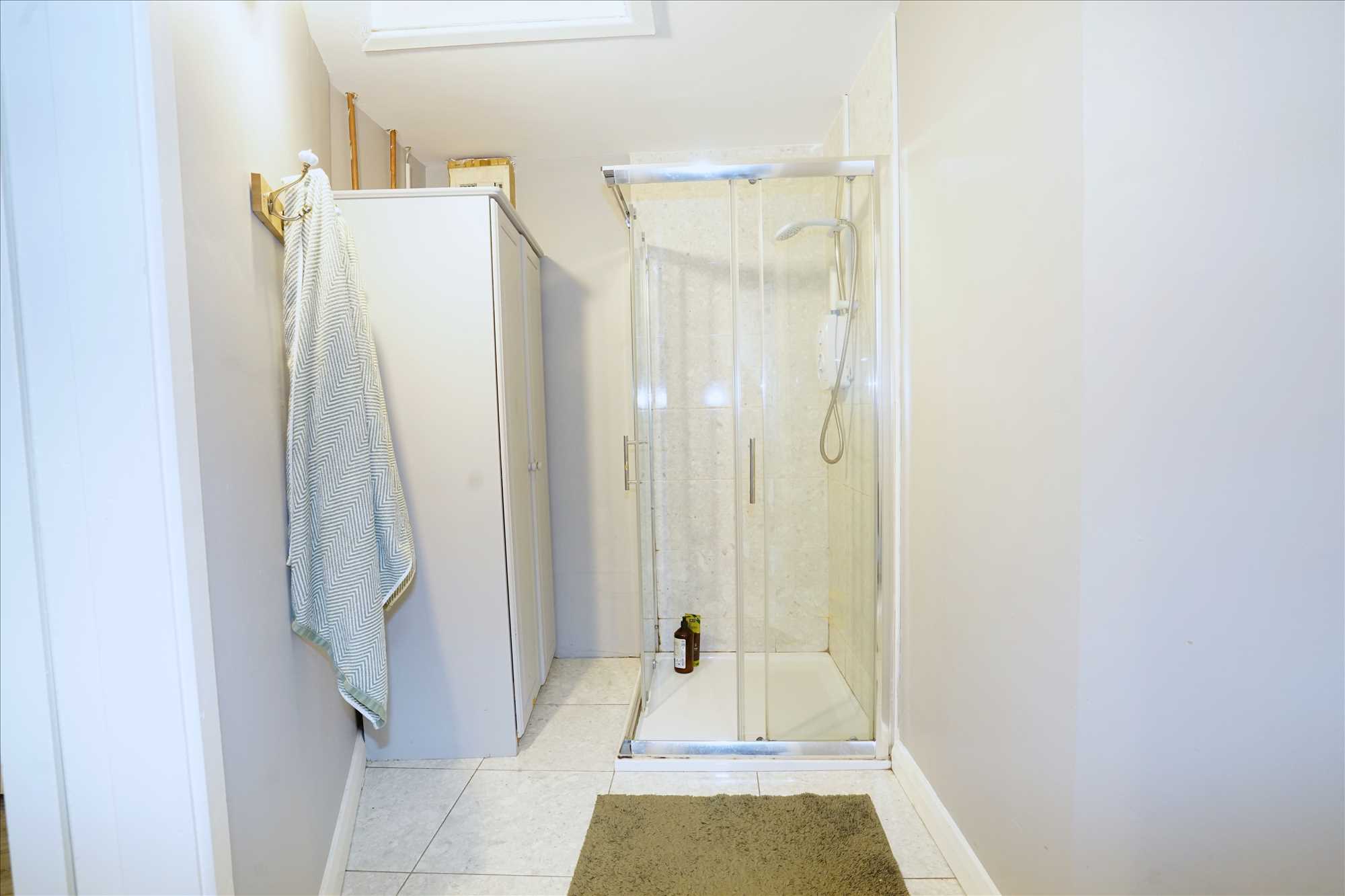 Shower Room: 1.5m x 2.7m. Tiled floor, electric shower.