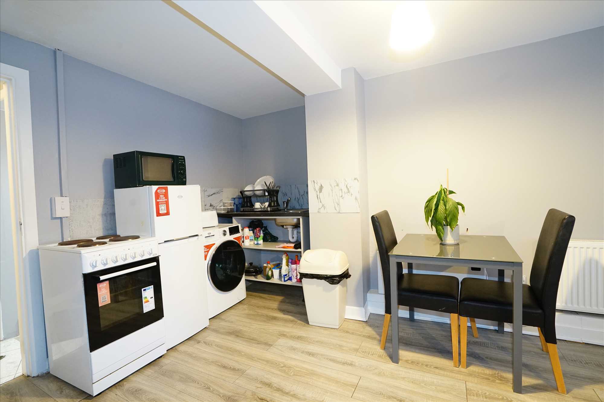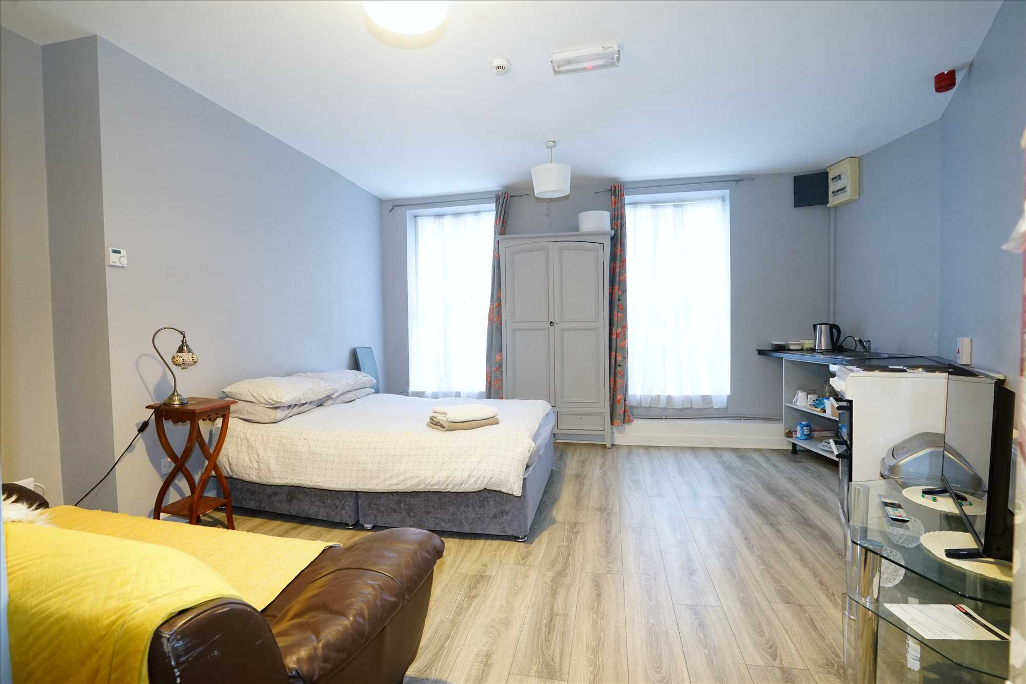 Open plan bedroom/living/kitchenette: 4.4m x 4.6m. Laminate floor, sink area.