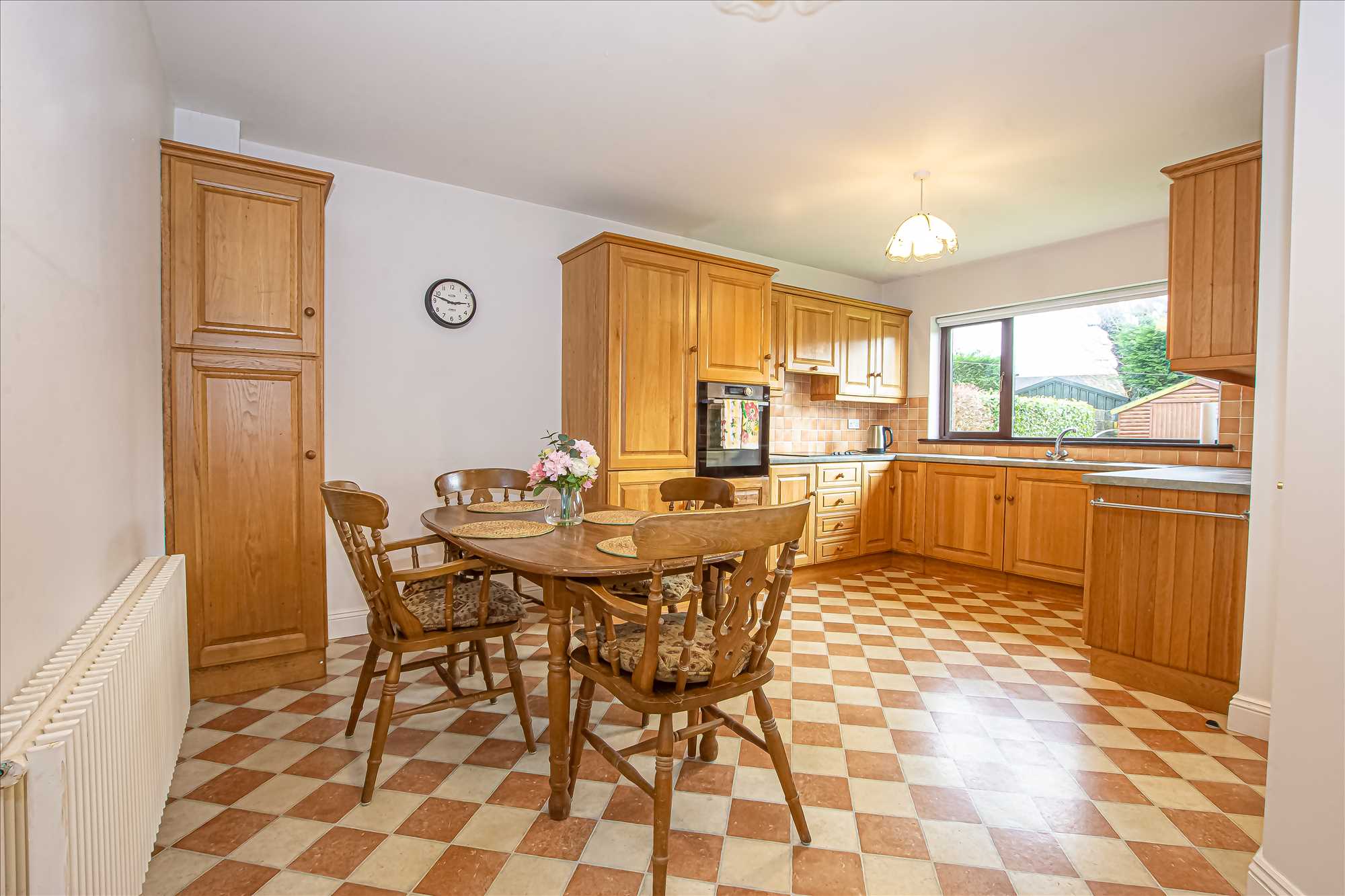 Kitchen/Diner: 5.07m x 4.47m. Lino floor, blinds, fitted kitchen with integrated oven & hob.