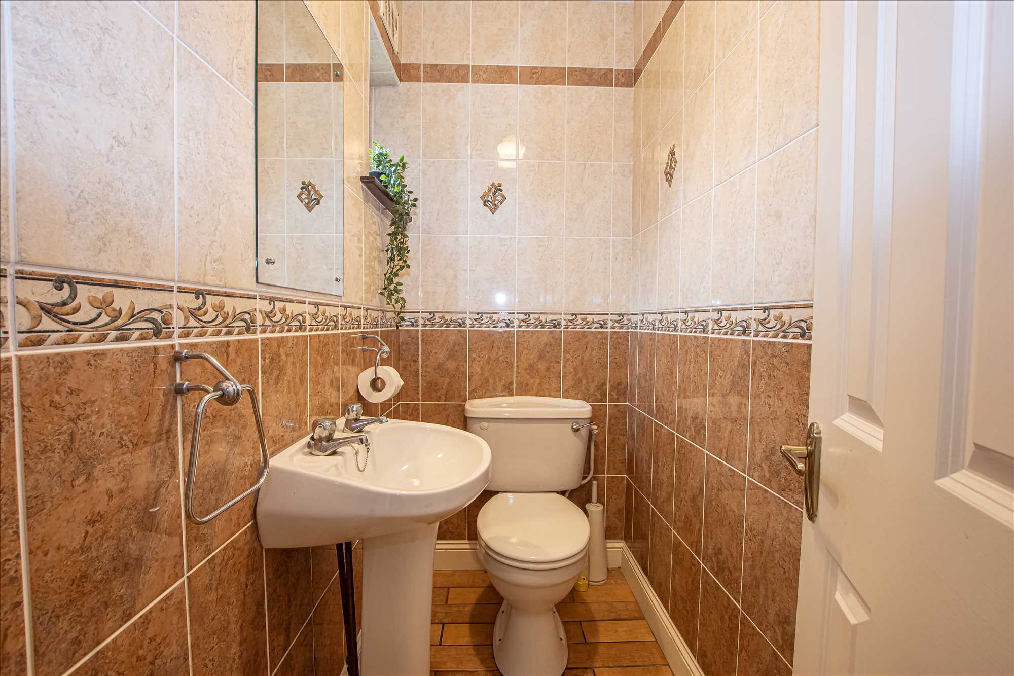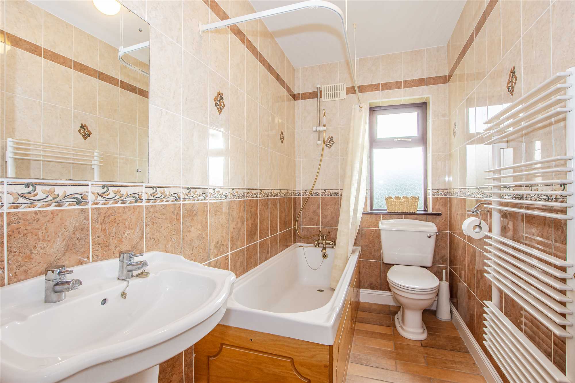 Bathroom: 2.68m x 1.5m. Fully tiled, wash hand basin, WC, heated towel rail