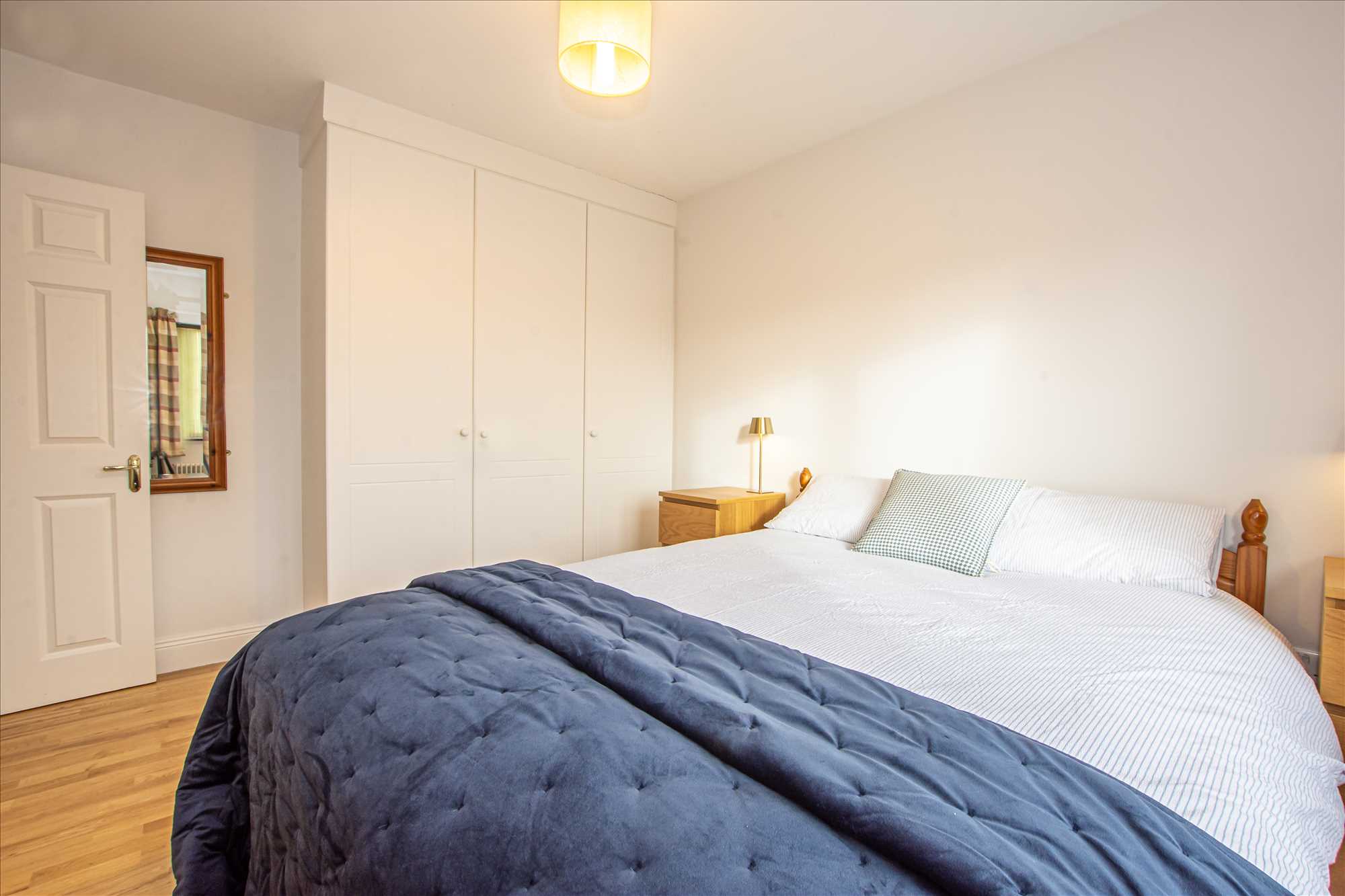 Master Bedroom: 3.6m x 4.45m plus bay 0.56m x 2.2m. Laminate floor, blinds, fitted wardrobes.