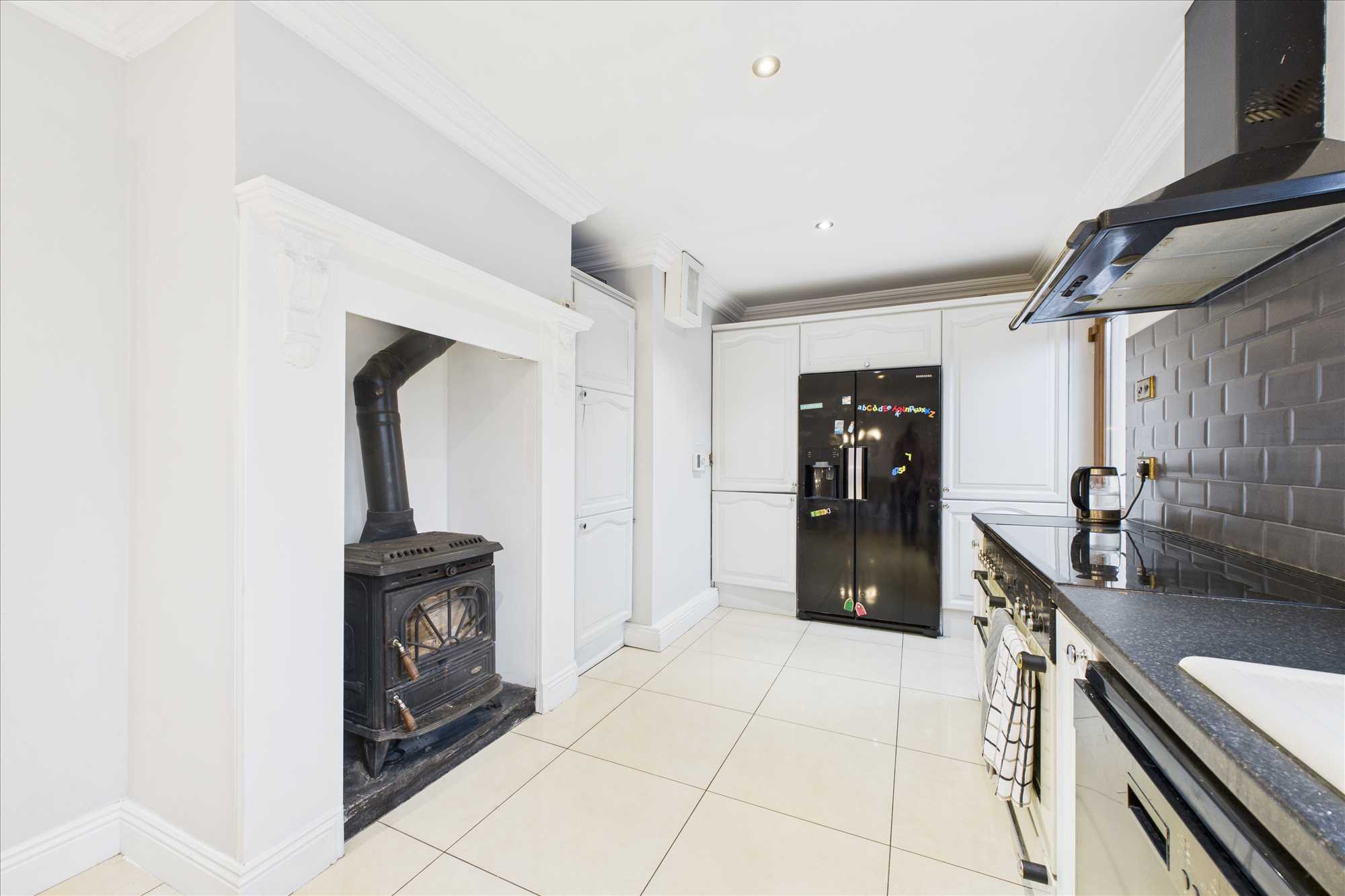 Kitchen/Diner: 3m x 6.67m and 4.14m x 3.91m. Tiled floor, fitted kitchen with range master, Stanley stove, French doors to rear garden.